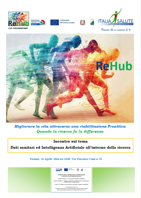 Il 18 Aprile 2024 ore 16:00 presso la sede operativa di Via Vincenzo Comi n.33 a Teramo, Incontro sul tema “Dati sanitari ed Intelligenza Artificiale all’interno della ricerca”