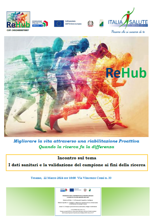 Il 22 Marzo 2024 ore 10:00 presso la sede operativa di Via Vincenzo Comi n.33 a Teramo, Incontro sul tema “I dati sanitari e la validazione del campione ai fini della ricerca”