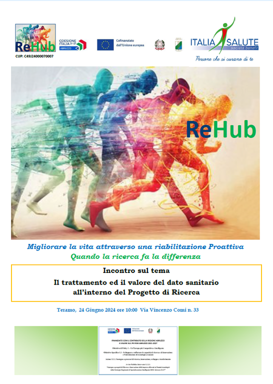 Il 24 Giugno 2024 ore 10:00 presso la sede operativa di Via Vincenzo Comi n.33 a Teramo, Incontro sul tema “Il trattamento ed il valore del dato sanitario all’interno del progetto di Ricerca”